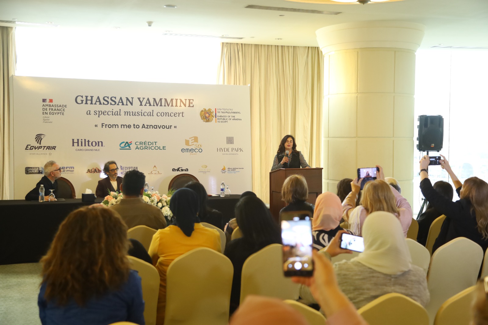 During the conference, the event’s organizer, Huda Abboud, emphasized the importance of the event on the artistic and cultural levels and its role in promoting cultural bridges between peoples. She noted that celebrating Aznavour is not limited to honoring a global artist; it is a celebration of the value of art and the legacy of one of the most prominent human voices of the twentieth century. She stated, « It is an exceptional cultural event, held under the auspices of the Armenian and French Embassies in Cairo, in celebration of the centenary of the world-renowned artist Charles Aznavour… Today, we are not only celebrating the centenary of an international artist, but we are also celebrating the value of art, power of creative influence, and Egypt’s position as a hub for arts and culture on the regional and global levels ».