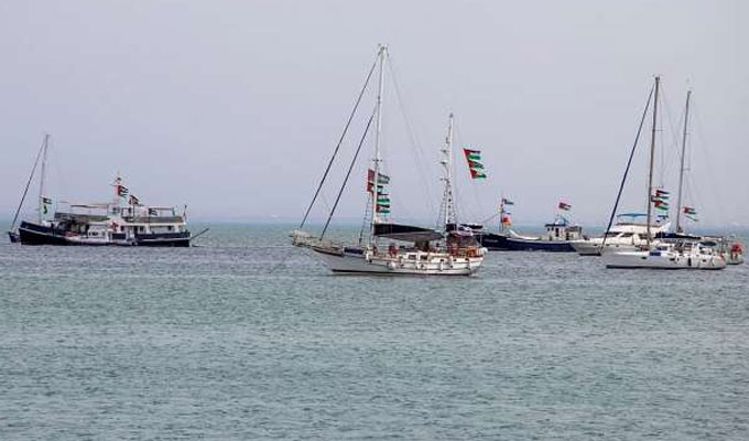 ويذكر ان سفن مجهولة قد اقتربت من سفن اسطول الصمود قبل قليل.