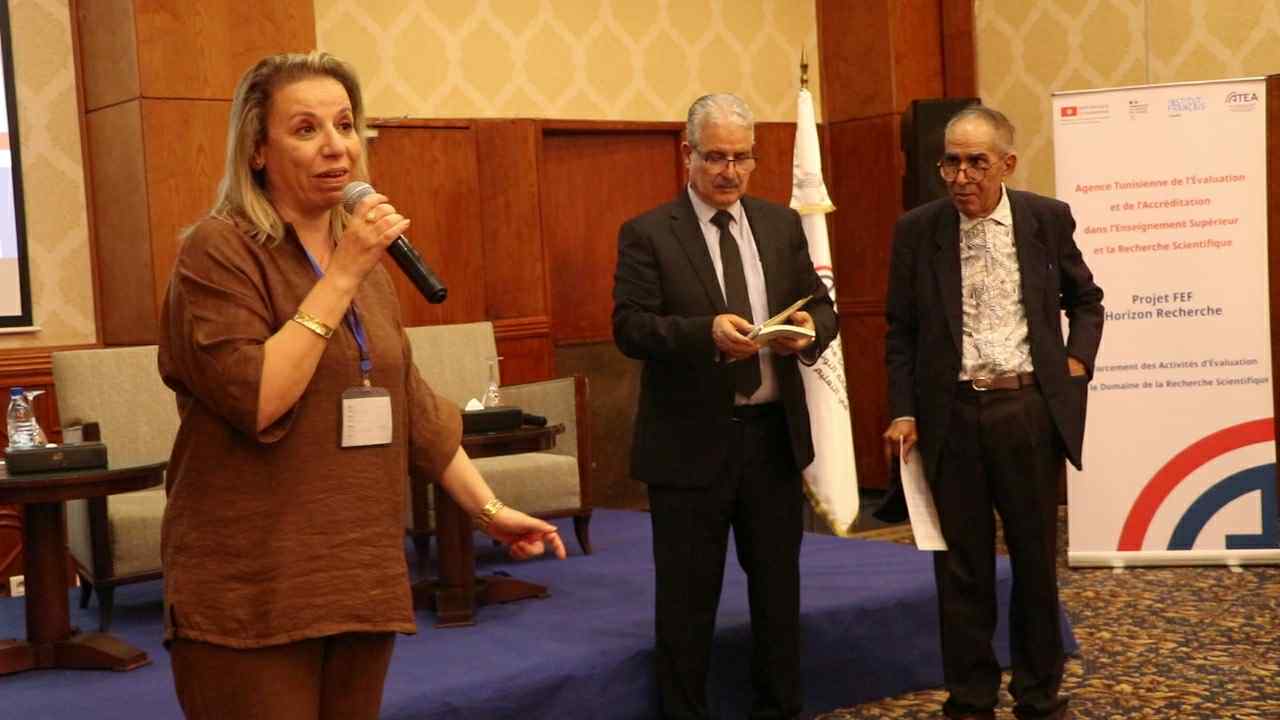 افتتحت اللقاء السيدة سلمى دمق، المديرة العامة للوكالة التونسية للتقييم والاعتماد في البحث العلمي (ATEA)، حيث أكدت في كلمتها على أن التقييم يمثل ركيزة أساسية لتطوير البحث العلمي وتعزيز تنافسيته. وأوضحت أن هذه الورشة تندرج في إطار تنفيذ مشروع FEF Horizon Recherche، الذي يسعى إلى ترسيخ ثقافة تقييم مستدامة وفعّالة، وتطوير أدوات قياس قادرة على ضمان جودة الإنتاج البحثي ومردوديته على المستويين الوطني والدولي.