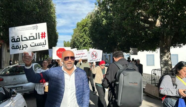 نفّذ الصحفيون التونسيون، اليوم الخميس، تحرّكاً وطنياً بساحة الحكومة بالقصبة وفي مختلف ولايات الجمهورية، تأكيداً على وحدة الصف الصحفي والدفاع عن حرية الإعلام وحقوق الصحفيين وكرامتهم. ورفع المشاركون شعارات تطالب بضمان حرية الصحافة، ورفع التضييقات على العمل الصحفي، وإيقاف التتبعات القضائية على خلفية الآراء والمهام المهنية، إلى جانب الدعوة لإلغاء المرسوم عدد 54 وتمرير القوانين الأساسية الخاصة بمؤسسات الإعلام العمومي.